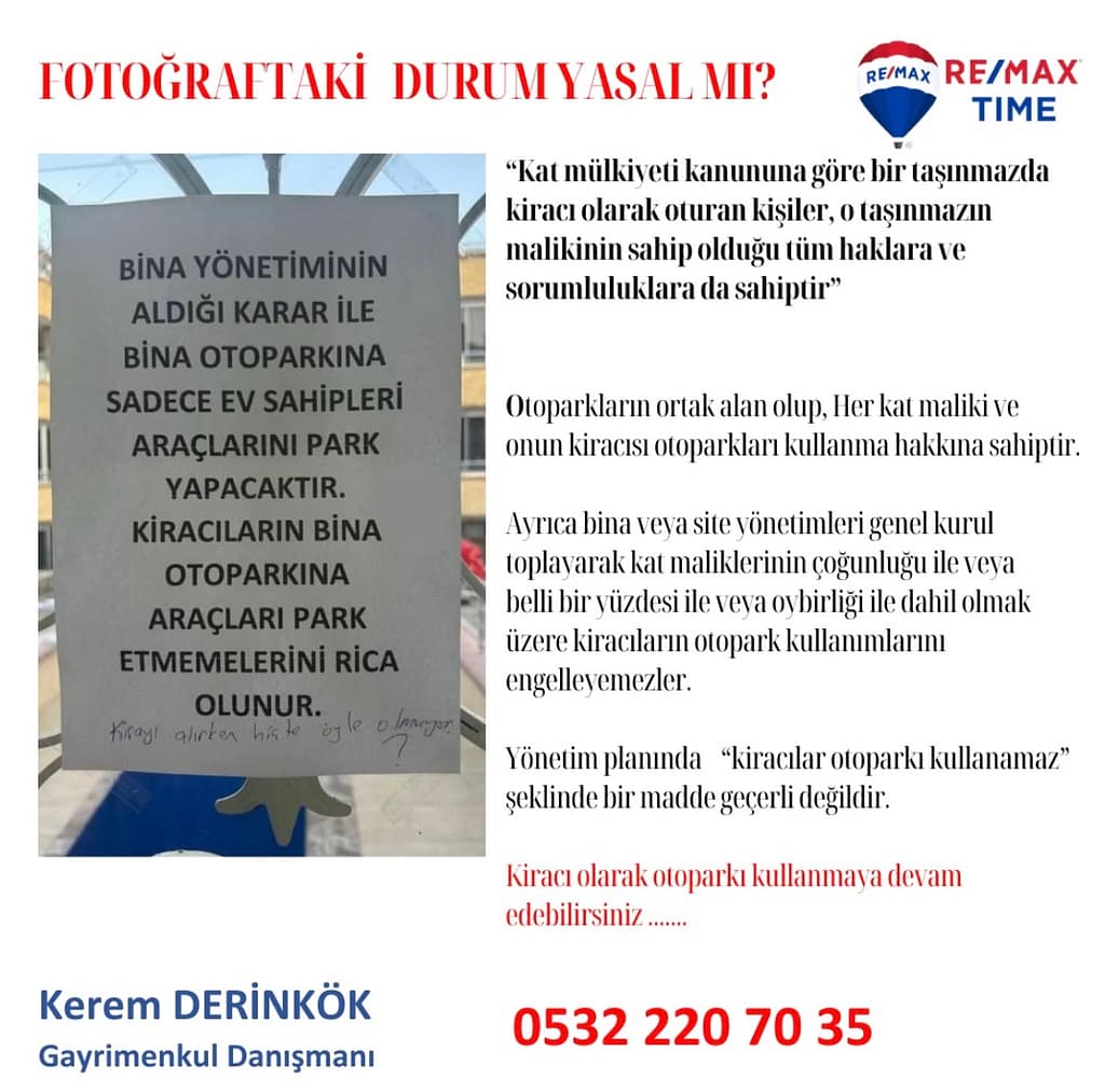 Yönetim planında “kiracılar otoparkı kullanamaz” şeklinde bir madde geçerli değildir.